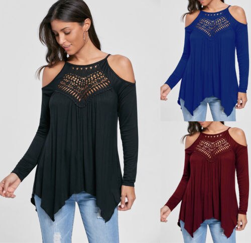 - Model Number: Lace Floral Crochet Off Shoulder Long Sleeve Blouse Shirts