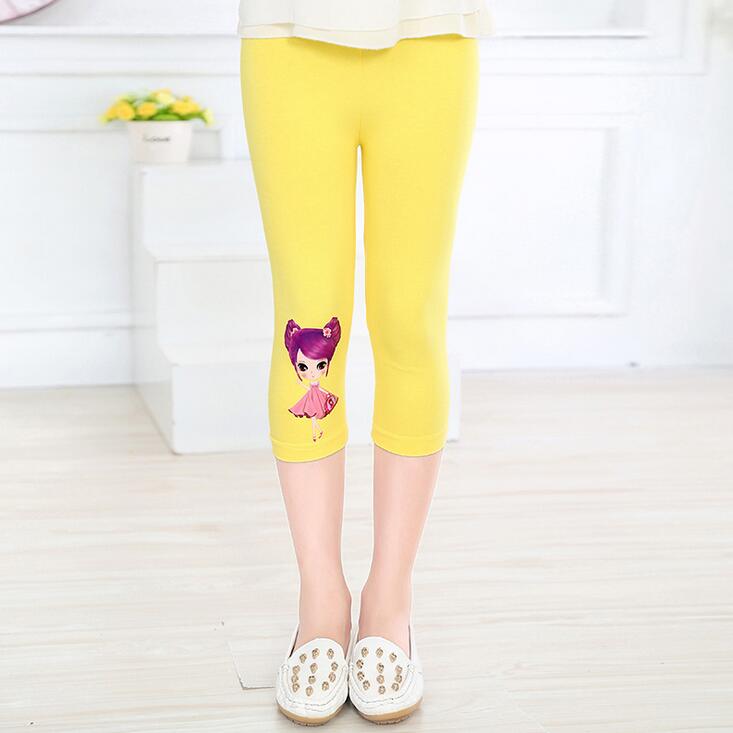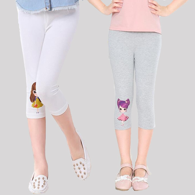 Let your little one express her personality and style with the cute Cotton Cartoon Calf Length Leggings adorning her. These leggings feature plain fabric accented only by the cartoon doll that sits along the knee. They extend down to the calf, making them a great choice for summer.