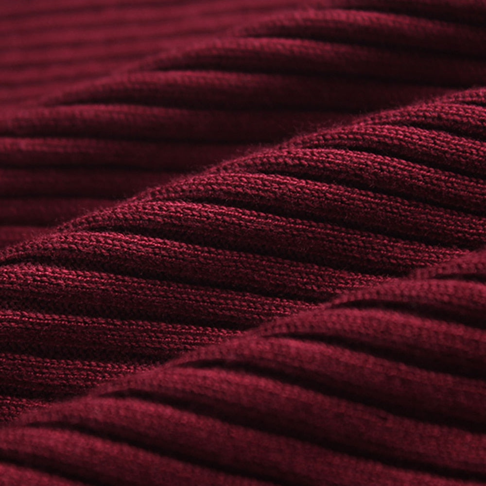 Flatter your figure ad look the part at any formal event wearing the Knit Party Dress. This party dress is fashioned out of knit material from the turtleneck to the wrists of the long sleeves down to the ankle-length hem. Choose from either black or red wine hues.