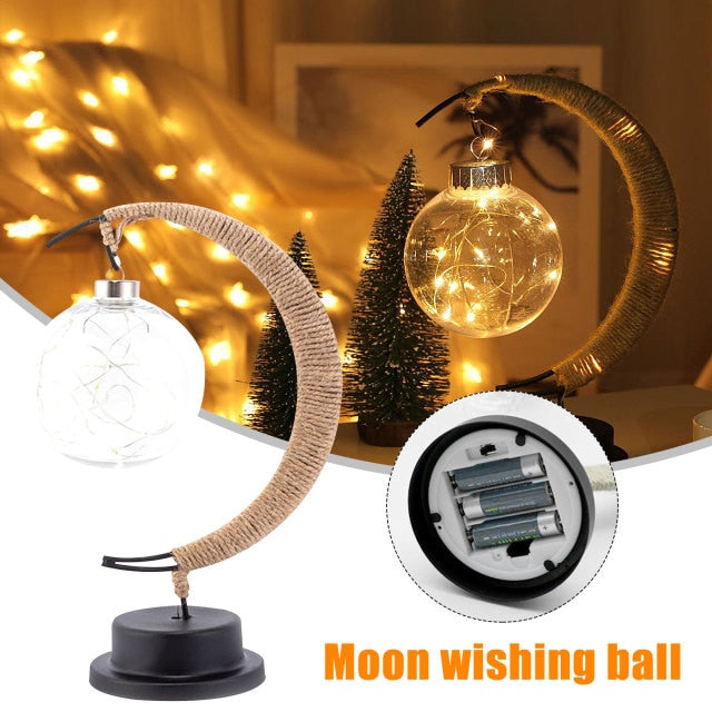 LED Moon Sepak Takraw Lamp Line Rattan Handmade Hemp Rope
