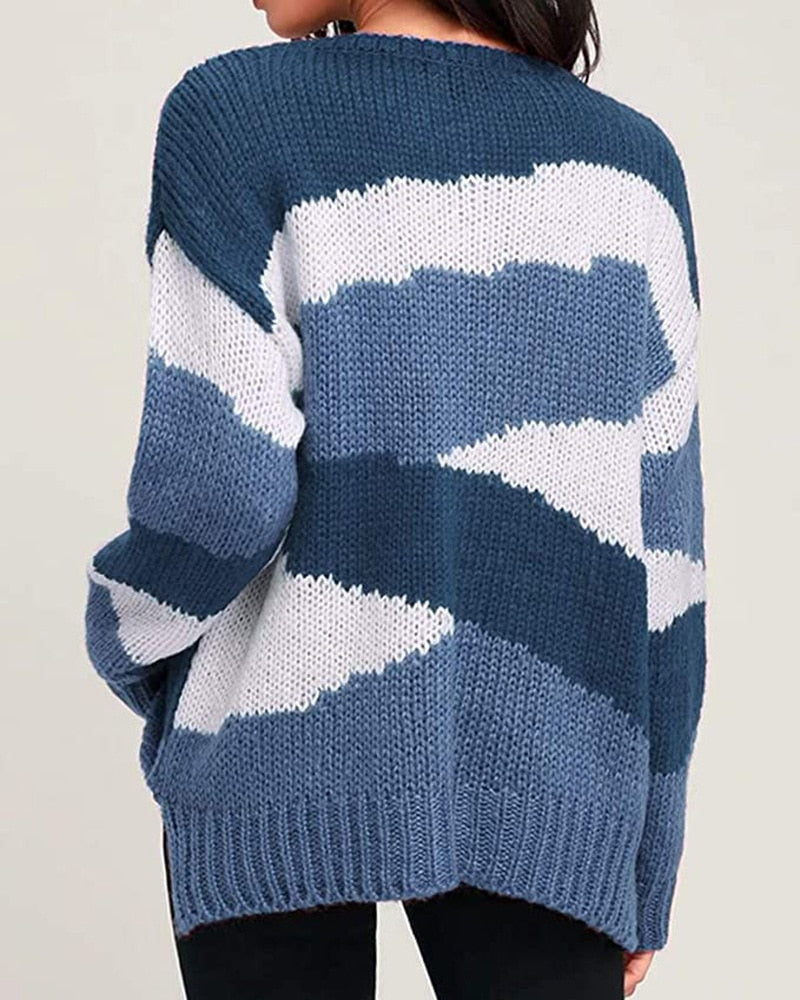 - This Color Block Sweater features warm, coordinating colors on a loose-fitting sweater. Pair with jeans and boots for the ultimate in comfort.