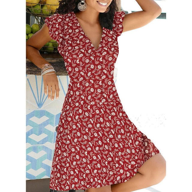 Show off her personality while feeling comfortable in the summer sun wearing these sweet Bohemia Floral pattern Dresses. Available in a huge variety of colors and styles, the dresses are playful, whimsical and very colorful pattern while being comfortable with their short sleeve design.